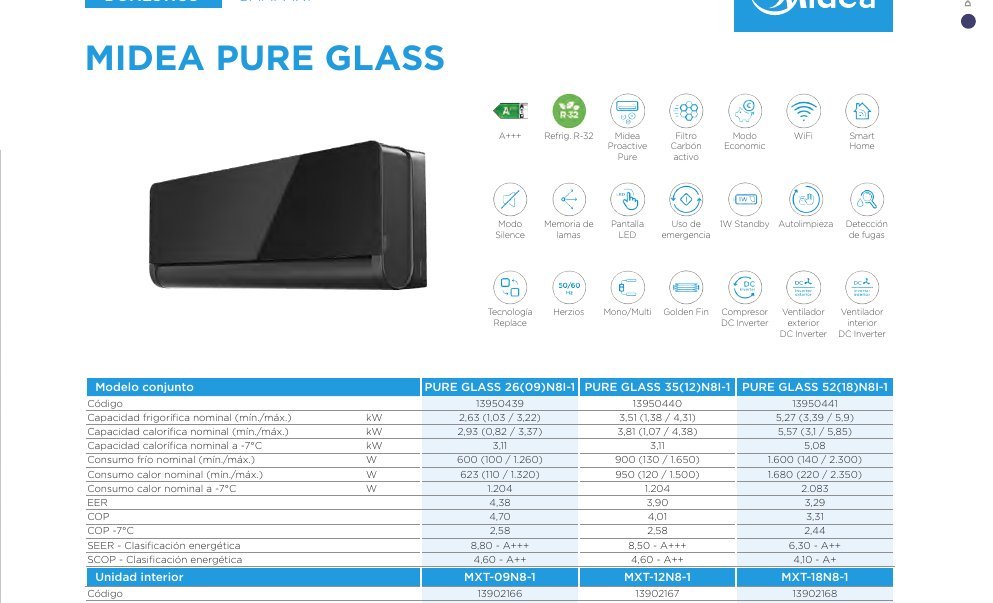 Sé el primero en valorar “1×1 Mural Pure Glass R32 3,5kW Fri. 3,8kW Cal.”