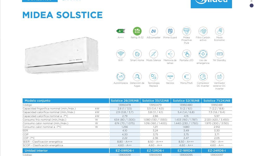 1×1 Mural Solstice Blanca R32 3,5kW Fri. 3,8kW Cal.
