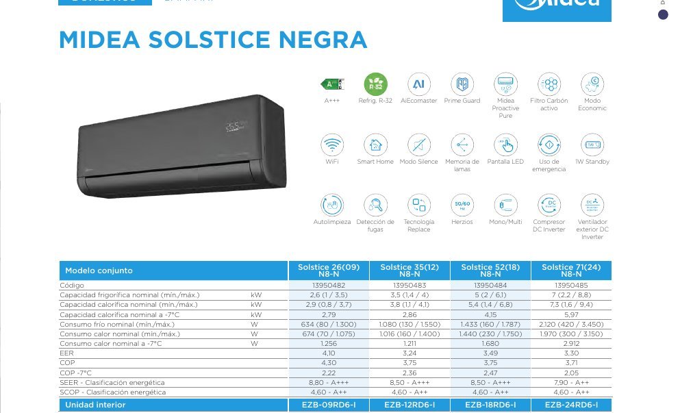 Sé el primero en valorar “1×1 Mural Solstice Negra R32 2,6kW Fri. 2,9kW Cal.”