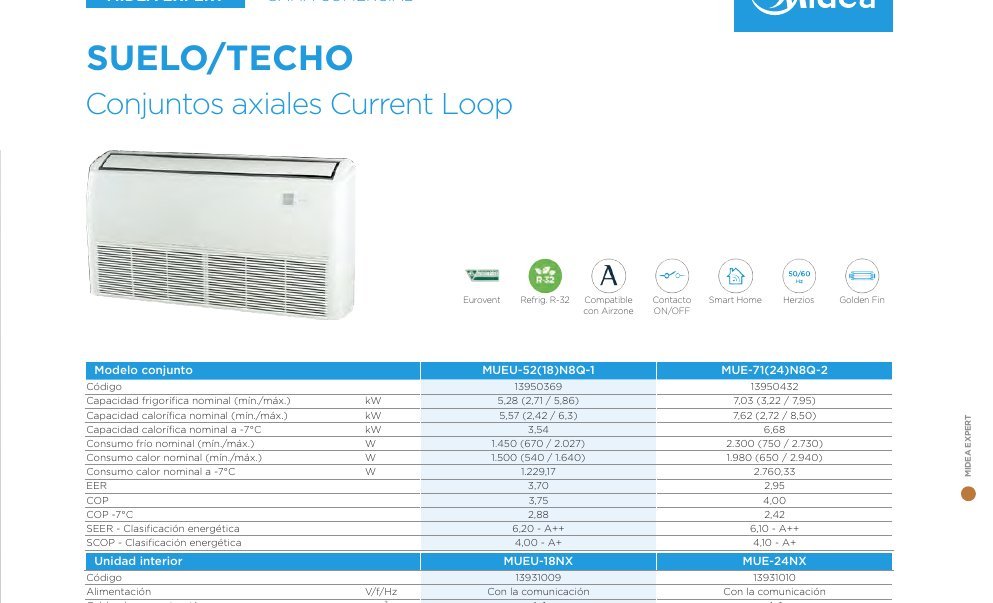 1×1 Suelo/Techo R32 7,0kW Fri. 7,6kW Cal. II