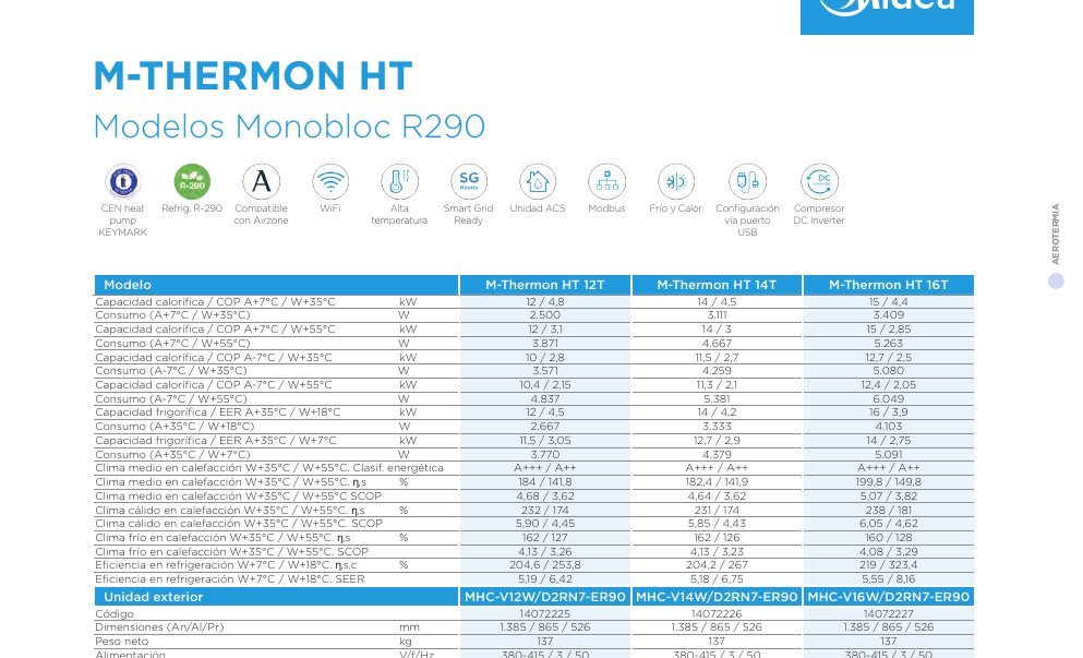 Aerotermia Monoblock R290 12,7kW Fri. 14,0kW Cal. III
