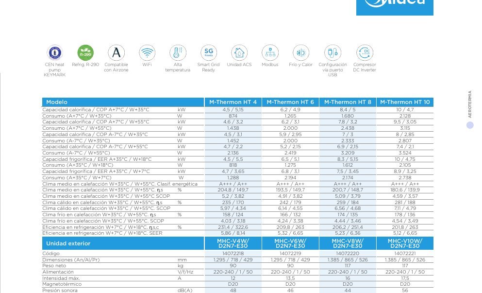 Aerotermia Monoblock R290 7,5kW Fri. 7,8kW Cal. II