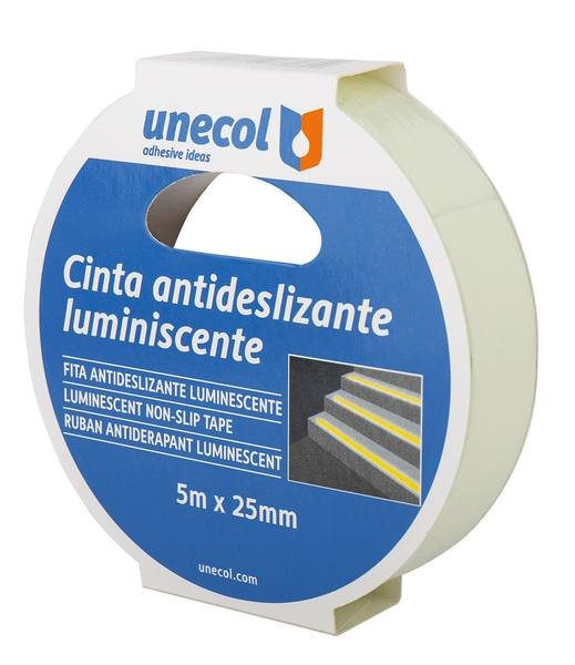 CINTA ANTIDESLIZANTE LUMINISCENTE, Rollo 5m x 50mm de la marca UNECOL. Cinta técnica de alta calidad para sellado, aislamiento y reparación en instalaciones. Producto profesional distribuido por NEODIST.