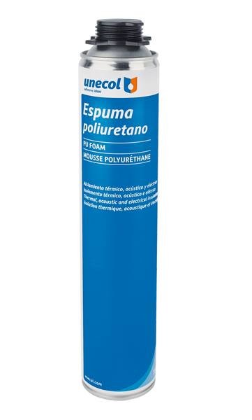 ESPUMA POLIURETANO PISTOLA, Spray 750 ml de la marca UNECOL. Sellador de alta calidad para sellado, impermeabilización y fijación. Producto profesional distribuido por NEODIST.