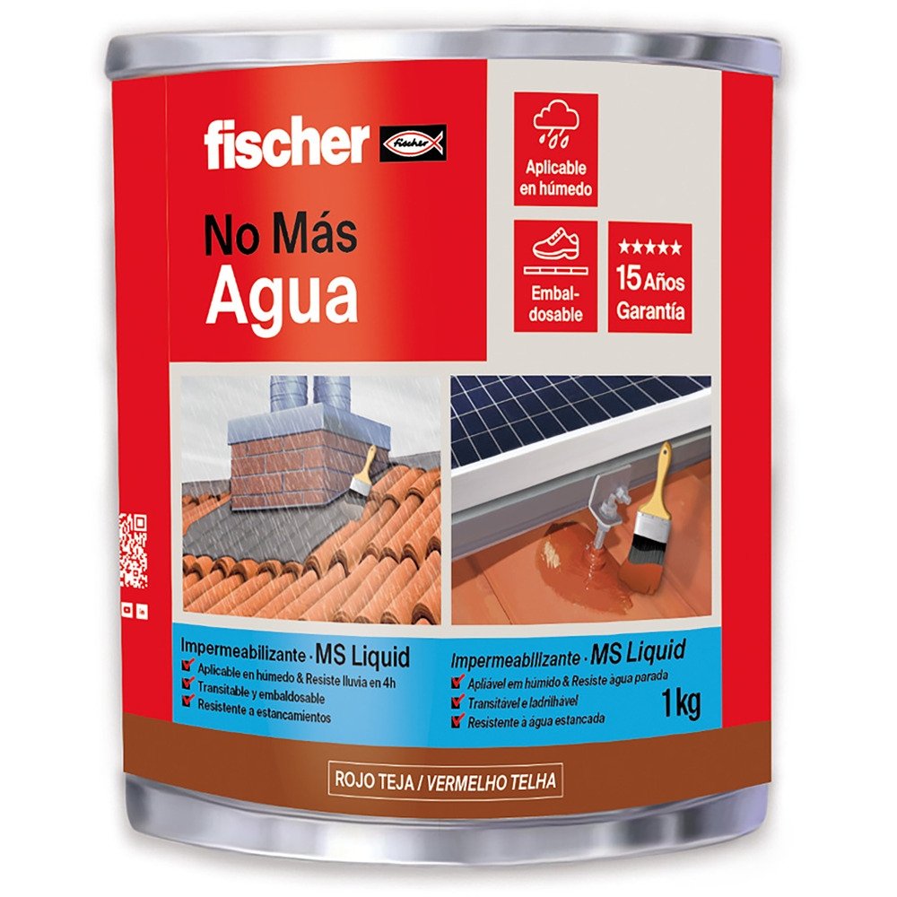 Impermeabilizante MS Liquid 1 kg marron, de la familia Auxiliares de instalación de la marca FISCHER. Producto profesional de fijaciones distribuido por NEODIST.