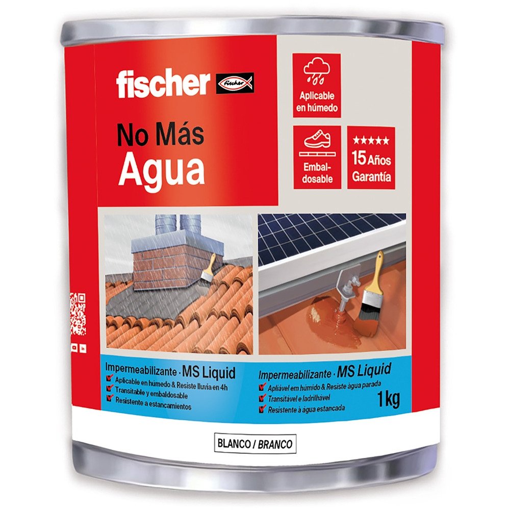 Impermeabilizante MS Liquid 1kg blanco, de la familia Auxiliares de instalación de la marca FISCHER. Producto profesional de fijaciones distribuido por NEODIST.