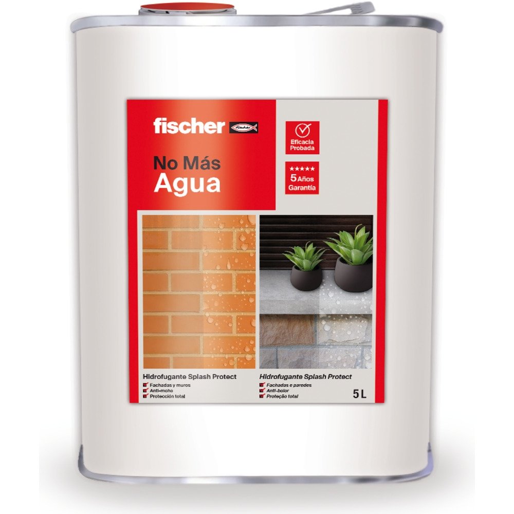 Impermeabilizante No Más Agua hidrofugante 5L, de la familia Auxiliares de instalación de la marca FISCHER. Producto profesional de fijaciones distribuido por NEODIST.