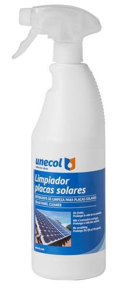 LIMPIADOR PLACAS SOLARES, Bote 750ml de la marca UNECOL. Auxiliar de fontanería de alta calidad para instalaciones de fontanería, climatización y gas. Producto profesional distribuido por NEODIST.