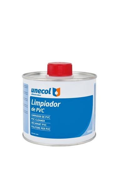 LIMPIADOR PVC, Bote metálico 500 ml de la marca UNECOL. Adhesivo de alta calidad para unión y sellado de tuberías y accesorios de PVC y plásticos. Producto profesional distribuido por NEODIST.