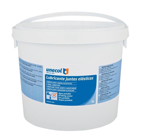 LUBRICANTE JUNTAS ELASTICAS, Cubo 5 L de la marca UNECOL. Auxiliar de fontanería de alta calidad para instalaciones de fontanería, climatización y gas. Producto profesional distribuido por NEODIST.