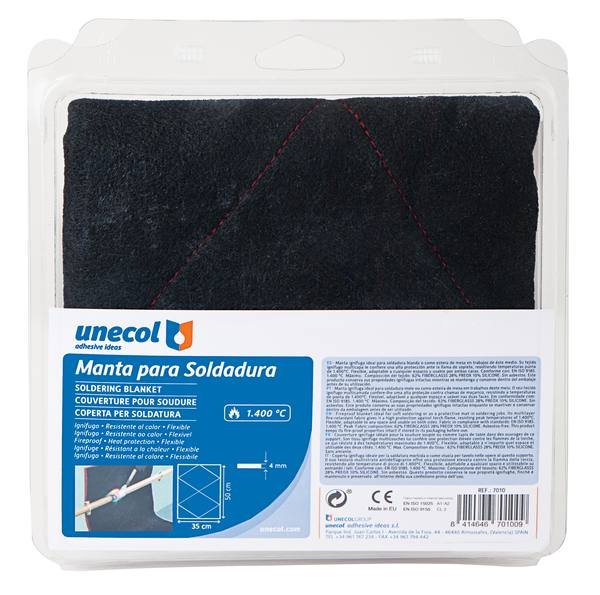 MANTA SOLDADURA FONT.,(1400°)50X35cm Neg de la marca UNECOL. Auxiliar de fontanería de alta calidad para instalaciones de fontanería, climatización y gas. Producto profesional distribuido por NEODIST.