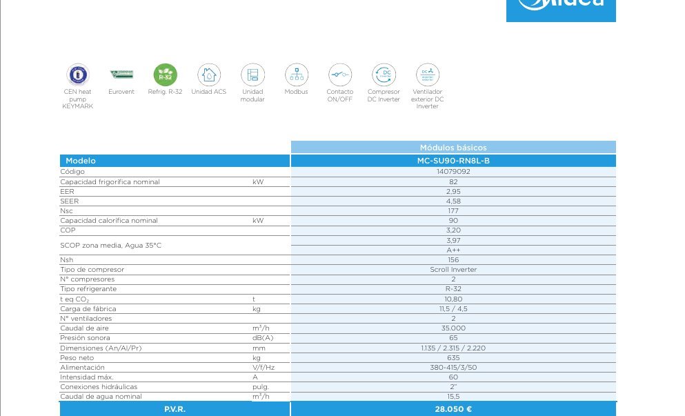 Sé el primero en valorar “MIDEA MC-SU90M-RN8L-B – B.d.C.+Kit Hidr Aqua Thermal R32 82,0kW Fri. 90,0kW Cal.”