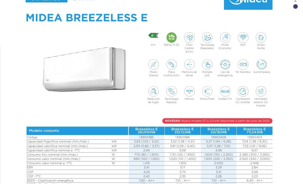Sé el primero en valorar “MIDEA MCB1-09N8 – U.Int. Mural Breezeless E 2,63kW Fri. 2,93kW Cal.”