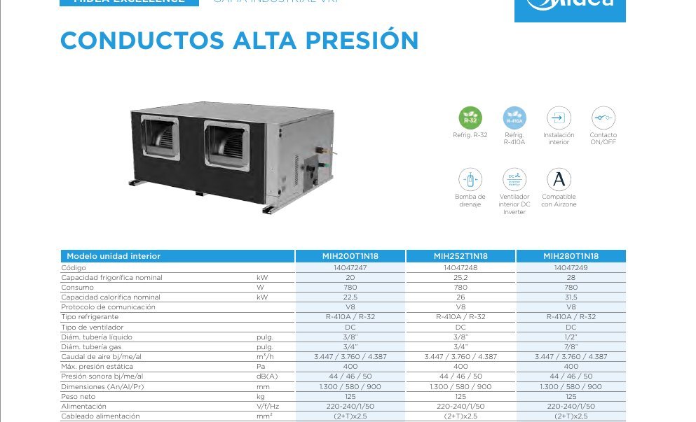 Sé el primero en valorar “MIDEA MIH252T1N18 – U.Int. Conductos Alta P. V8 25,2kW Fri. 26,0kW Cal.”