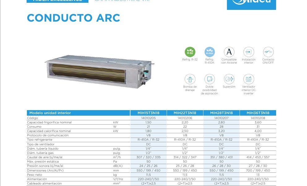 MIDEA MIH71T3N18 – U.Int. Conductos ARC V8 7,1kW Fri. 8,0kW Cal.