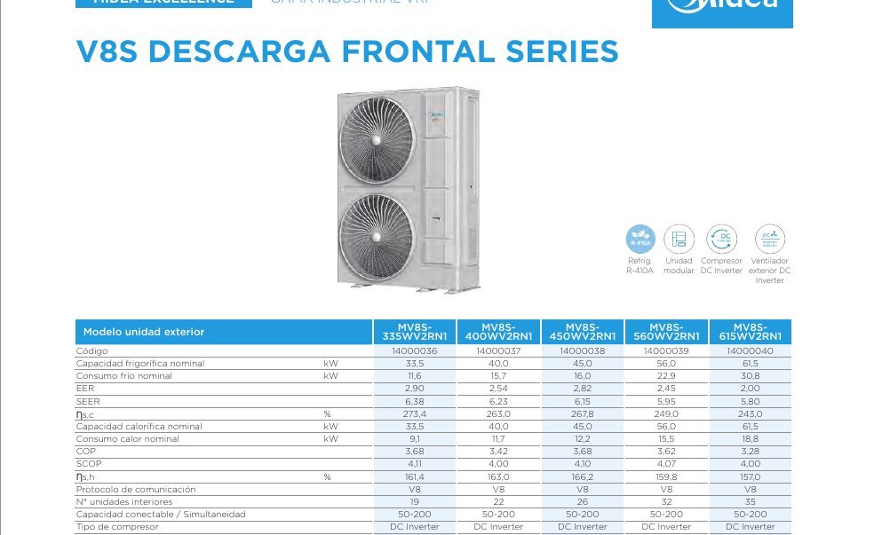 Sé el primero en valorar “MIDEA MV8S-335WV2RN1 – U.Ext. VRF D.Frontal Modul. 2T V8 33,5kW Fri. 33,5kW Cal.”