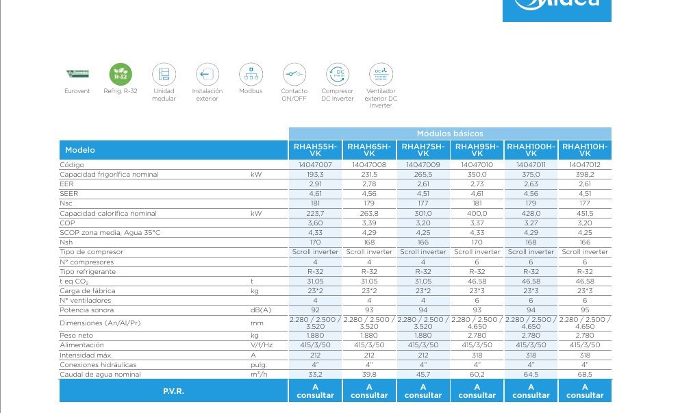 Sé el primero en valorar “MIDEA RHAH65HVK – B.d.C. Aqua Thermal Max R32 231,5kW Fri. 263,8kW Cal.”