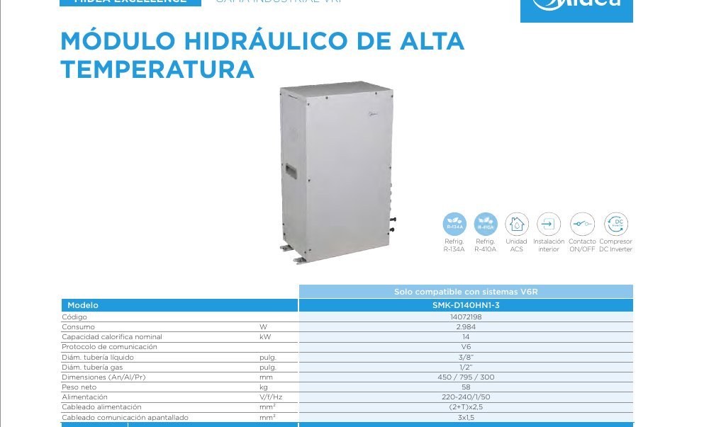 MIDEA SMK-D140HN1-3 – U.Int. Kit ACS Alta Temperatura V6 14,0kW Cal.