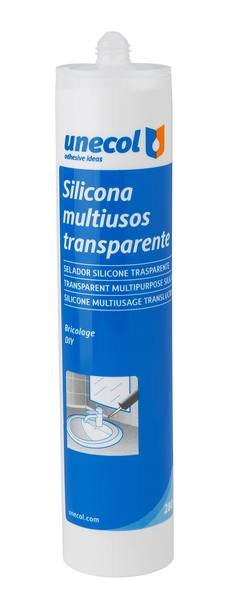 SILICONA MULTIUSOS TRANSLUCIDA, Cartucho 280 ml de la marca UNECOL. Sellador de alta calidad para sellado, impermeabilización y fijación. Producto profesional distribuido por NEODIST.