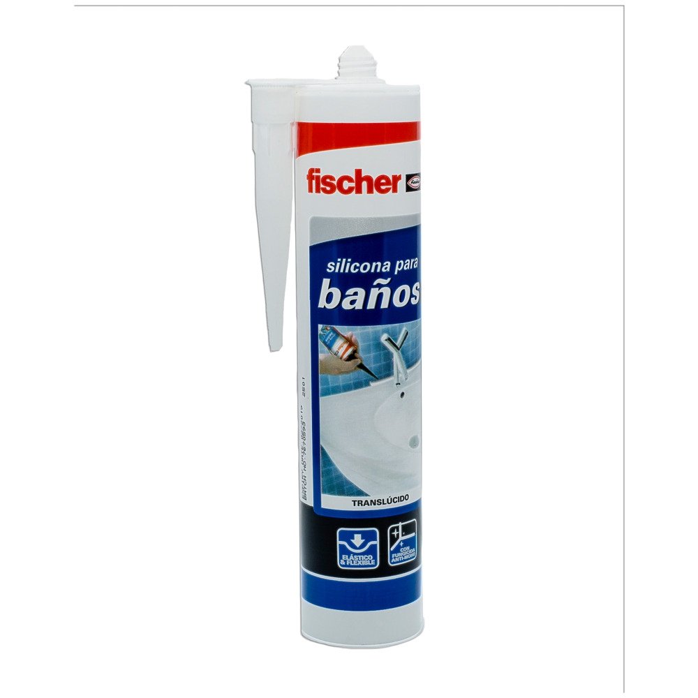 Silicona para baños transparente, de la familia Auxiliares de instalación de la marca FISCHER. Producto profesional de fijaciones distribuido por NEODIST.