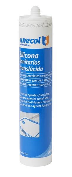 SILICONA SANITARIOS TRANSLUCIDA, Cartucho 300 ml de la marca UNECOL. Sellador de alta calidad para sellado, impermeabilización y fijación. Producto profesional distribuido por NEODIST.