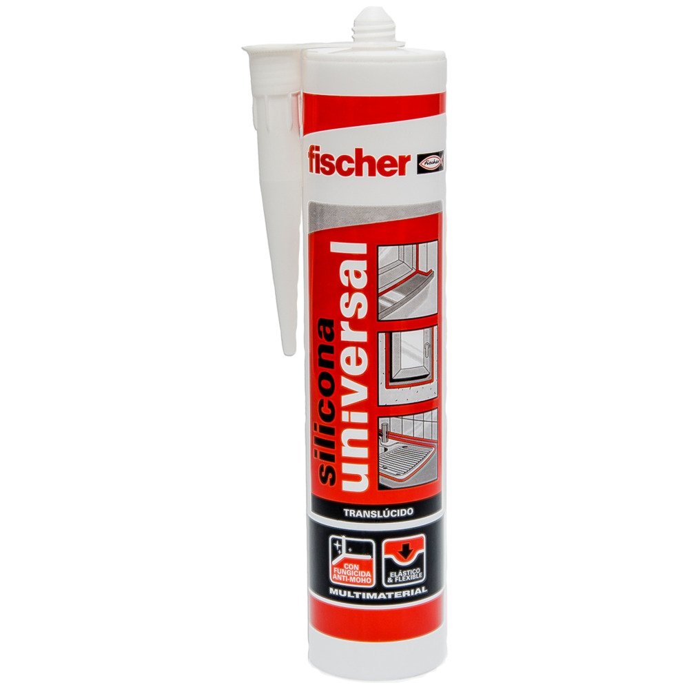 Silicona universal transparente, de la familia Auxiliares de instalación de la marca FISCHER. Producto profesional de fijaciones distribuido por NEODIST.