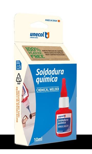 SOLDADURA QUIMICA, Blíster Box botella 10 ml de la marca UNECOL. Auxiliar de fontanería de alta calidad para instalaciones de fontanería, climatización y gas. Producto profesional distribuido por NEODIST.