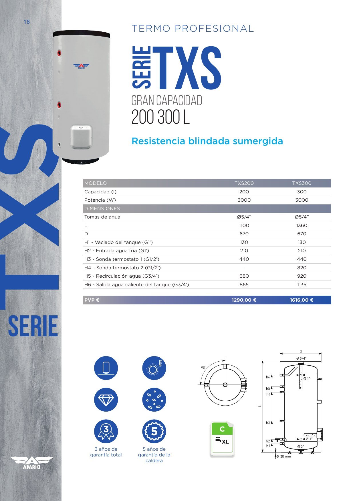 Sé el primero en valorar “TERMO 200 L. TXS – Vertical suelo”